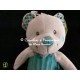 Doudou ours peluche pantin écru bleu oreilles à pois pieds tricots NICOTOY