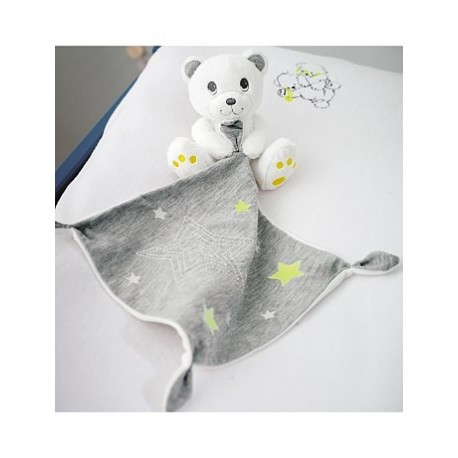 Doudou peluche ours blanc mouchoir gris étoiles brille dans la nuit SIMBA TOYS NICOTOY